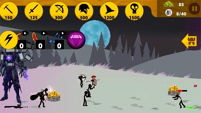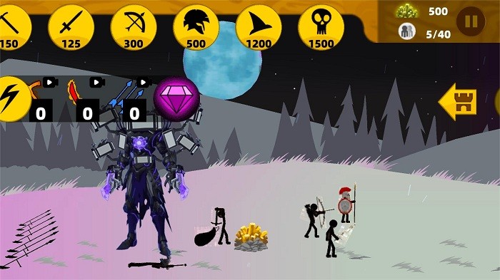 兵种类型丰富,选择不同的火柴人勇士,如剑士、弓箭手和法师等,每个勇士都有独特的技能和属性