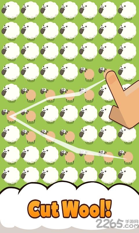 2、按住绿毛绵羊拖动手指剪切羊毛。