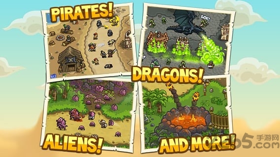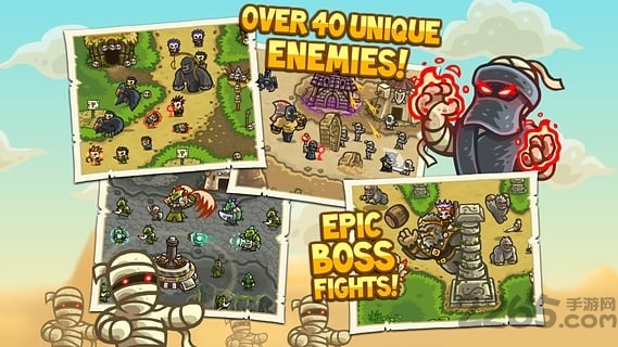 * 八种全新专业防御塔升级!你可以用弩兵堡垒、强大的圣殿骑士、亡灵甚至地震机切开、烤焦和践踏你的敌人 -- 嘿,我们告诉过你会动摇一切的.