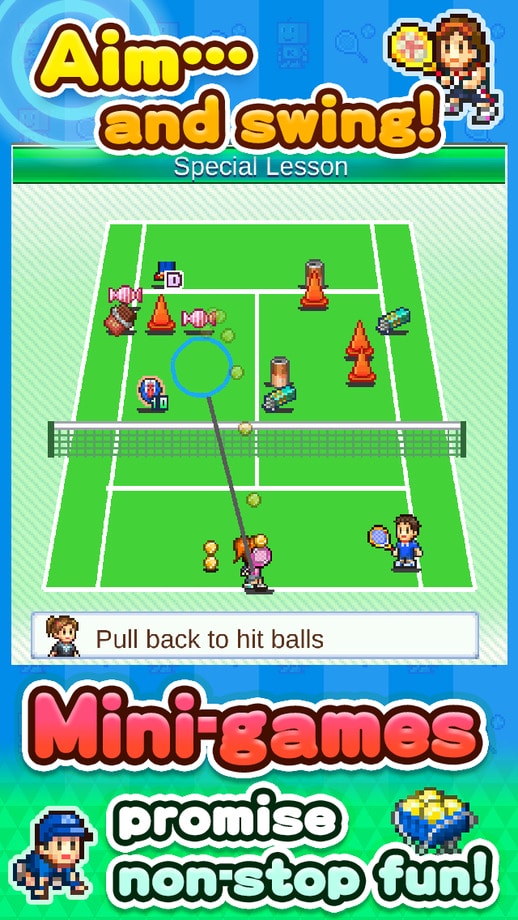 《开罗网球俱乐部物语》是一款网球爱好者开发的网球手机游戏,它融合了时尚新潮的网球比赛元素,加上丰富灵活的动作设计和精致的视觉画面,让爱好网球的玩家们大呼过瘾。