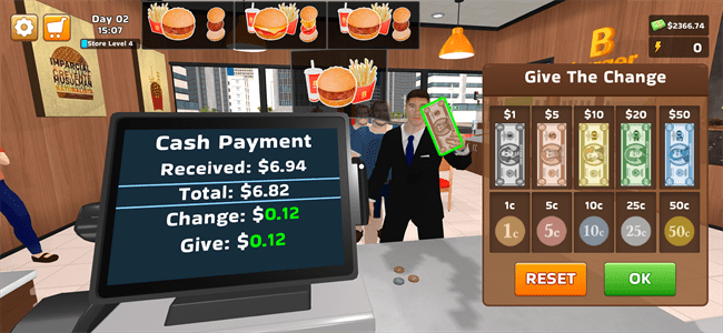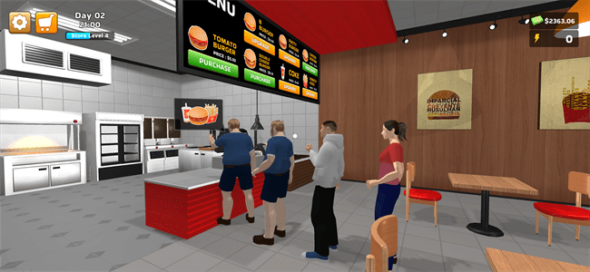 在您的汉堡店模拟中掌控收银台,管理现金和信用卡交易。确保每笔支付都能快速、准确地处理,以保持顾客满意度。留意潜在的小偷,并考虑增加安全措施来保护您的业务。这一功能将吸引喜欢超市模拟游戏中收银元素的玩家。