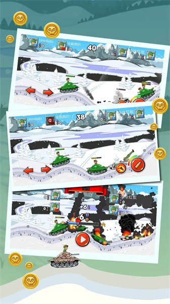 4、资源争夺:在地图关键区域收集强化道具,临时提升装甲或火力属性扭转战局。