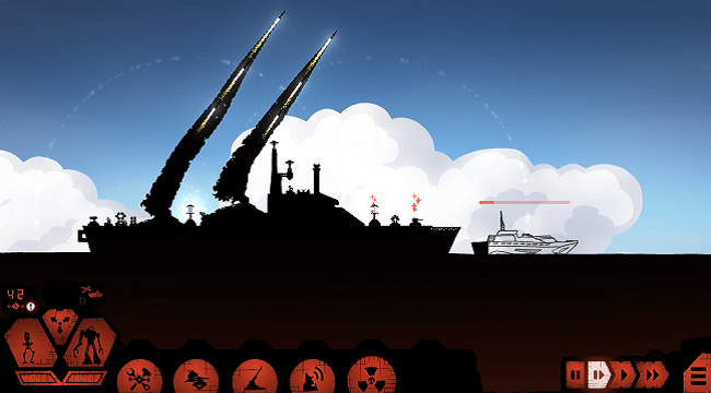 模拟军舰战斗策略游戏,以黄昏为背景的色调,真有大战当中一决雌雄的既视感。