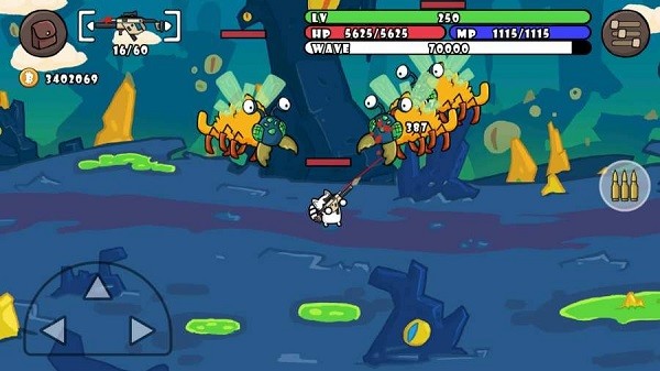 3、游戏中你将化身为我们可爱的猫比特,在游戏中去消灭各种各样的怪物