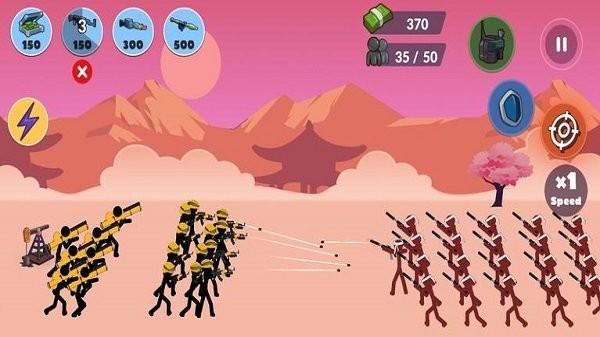 1、收集石油资源来招募不同类型的火柴人士兵。
