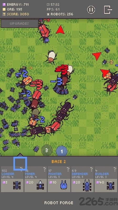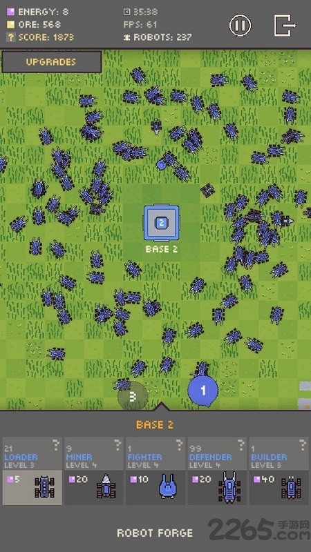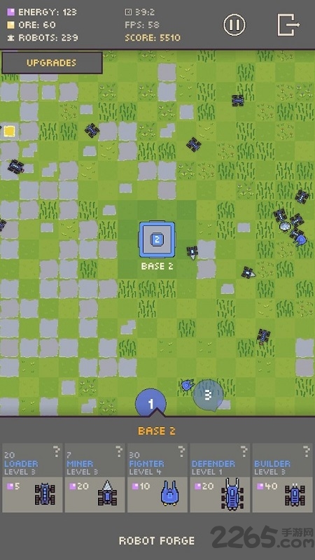 3、通过升级机器人能力与扩大领地来提升生存效率。