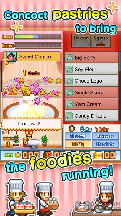 攒够资金后还可以举行投资,坦荡新的客户层,海绵蛋糕+草莓+鲜奶油=生果蛋糕,可以发明各类组合食谱。加上装饰食材创作出最高档级的点心吧,跟着GAME的持久希望,还会呈现需要迅速应对客人需求的「殿堂挑战」与晋升点心的力量的「研究室」等奥密要素???可以拜访天下的朋侪的通讯技术,在就寝时间也可以主动贩卖点心的行商模式!可供玩家长~时间嬉戏。谋划你所向往的点心屋吧!在竞赛中得到优胜的话,可以吸引大量客人来店的点心屋育成GAME,客人得到餍足的话,会送给店肆有效的食材与款项等礼品,食材的产地也是很主要的元素。