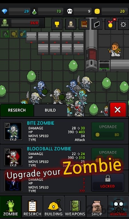 创造和培养僵尸,征服世界,将僵尸们合成,开发出更强地僵尸强化了各种武器,坦克,宇宙飞船。请捕猎外星人、突然变异!