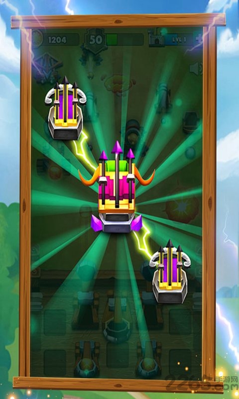 1、通过合成相同等级武器来提升炮塔战斗力。