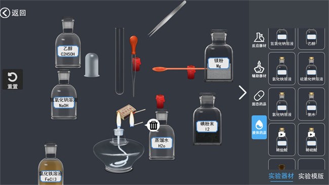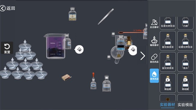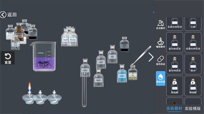 模拟了真实的化学实验过程,可以按照实验步骤,使用不同的器材和试剂。