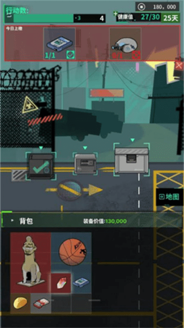 5、每一次移动都会消耗一点行动点,行动点全部消耗完毕后就需要回到基地。完成任务后就可以下班结束一天,当你存活的时间越长能使用的行动点数就越多。