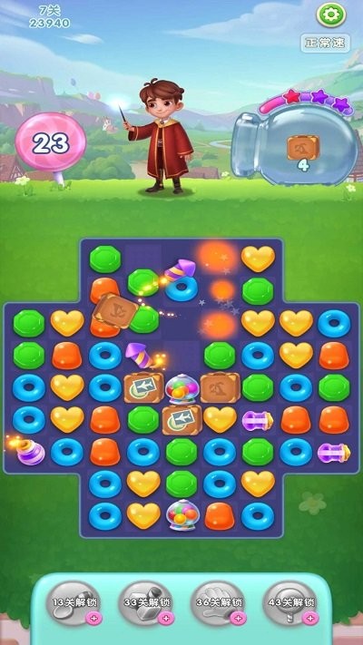 1、三个女巫一台戏,要么射出几个小怪兽,要么赐予几颗硬糖,要么冰冻某些糖果...总之,她们会想尽一切办法,不让你安宁,唯一的办法就是你必须尽快的消灭她们。