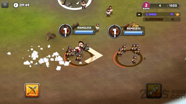 1、控制英雄移动招募士兵壮大队伍规模。