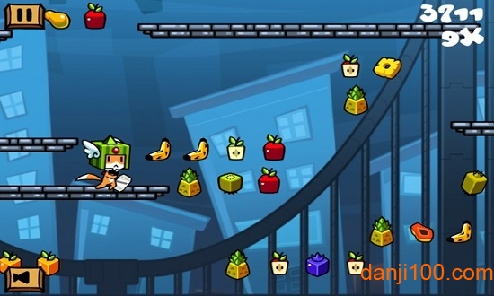 2、收集场景中的水果与道具,注意避开障碍与敌人。