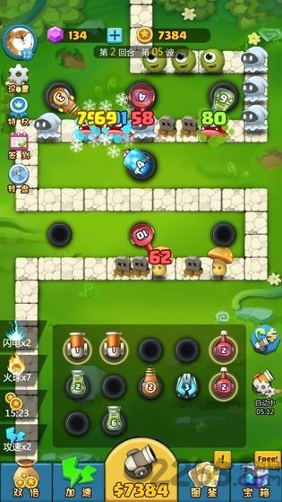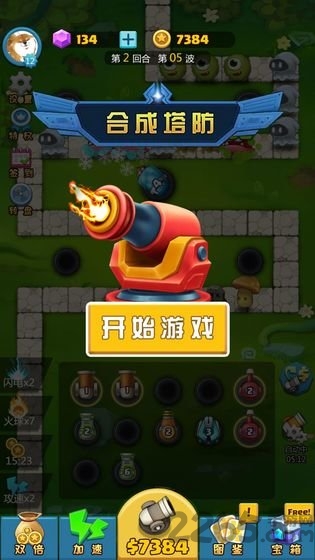 1、放置相同炮塔会自动合成高级形态增强火力。