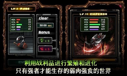 2、利用进化系统提升精子属性并改变战斗形态。