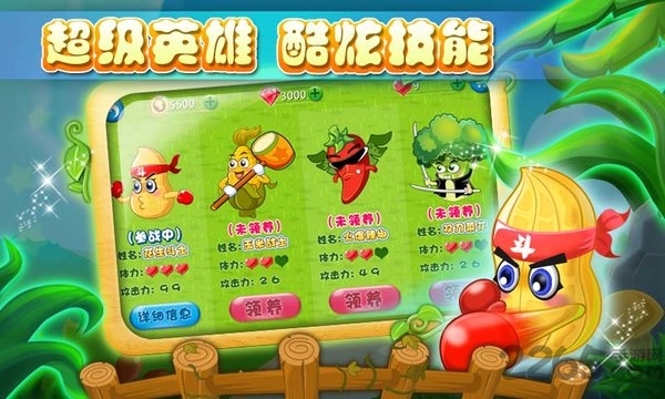 4、具备独特能力的多个英雄:可通过战斗获取绿叶,购买一系列英雄角色。获得经验值,提升等级并解锁神秘能力!
