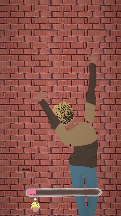 3、拖动手掌向上移动,抓握墙壁缝隙向上攀爬。