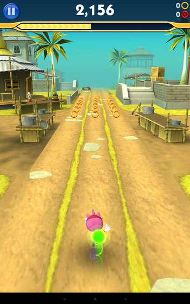 2.沿袭了经典的索尼克造型,一路飞奔,收集金环,躲避障碍等。