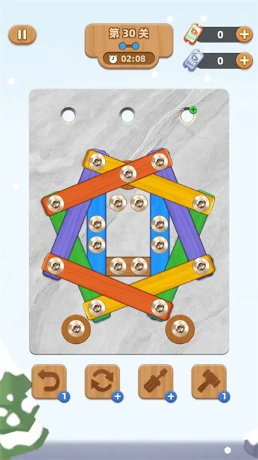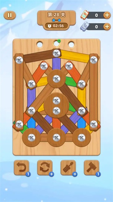 拆螺丝的过程并非无脑点击,而是需要结合观察、推理与策略,步步为营,才能顺利破解关卡。你需要仔细分析木板的连接方式,找到关键螺丝,从最优顺序入手,依次拆卸,最终完成挑战。