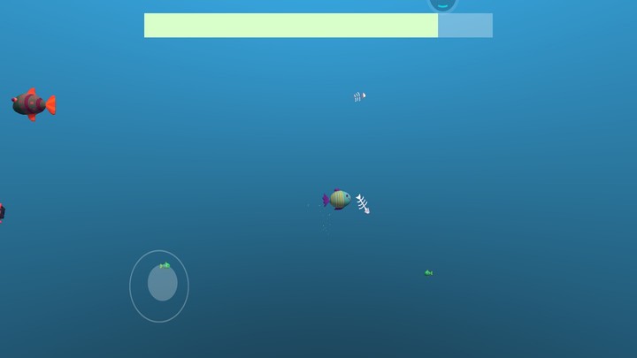 3、通过触屏操控小鱼移动,过程中碰到比自己小的鱼即可吃掉对方。