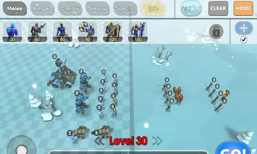 1、玩家需自主搭配多种兵种阵容进行战斗。