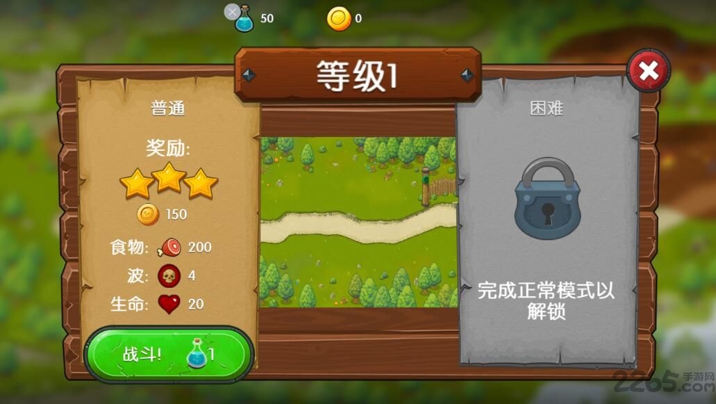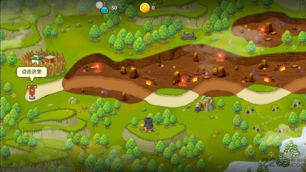 2、通过击败怪物获取资源升级魔法塔和英雄技能。