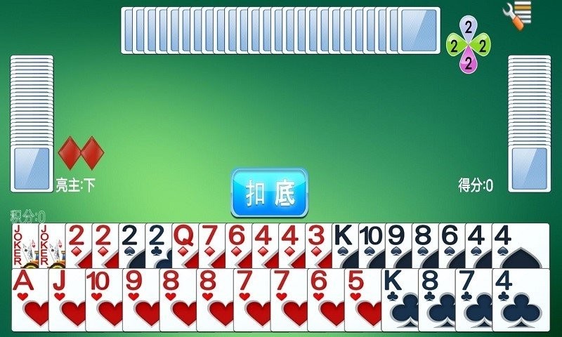 一局结束时,如果最后一轮牌由抓分方获胜,称为扣底。扣底时底牌的分牌按以下规则加倍给抓分方;