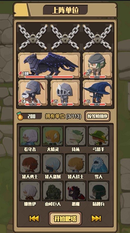 1、派遣你的部队去闯荡关卡,每个爬塔关卡都有不同的敌人。