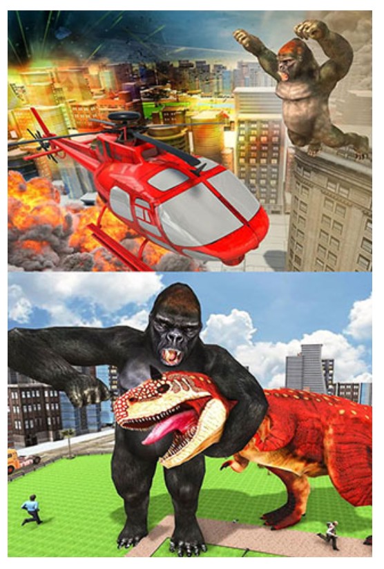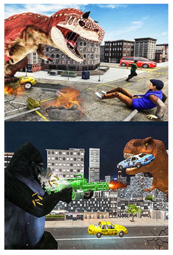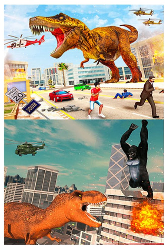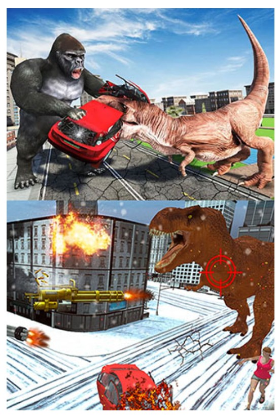 1、玩家可切换金刚或恐龙角色展开对决。