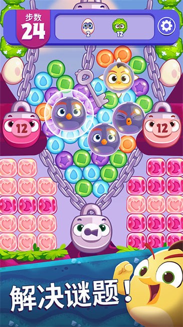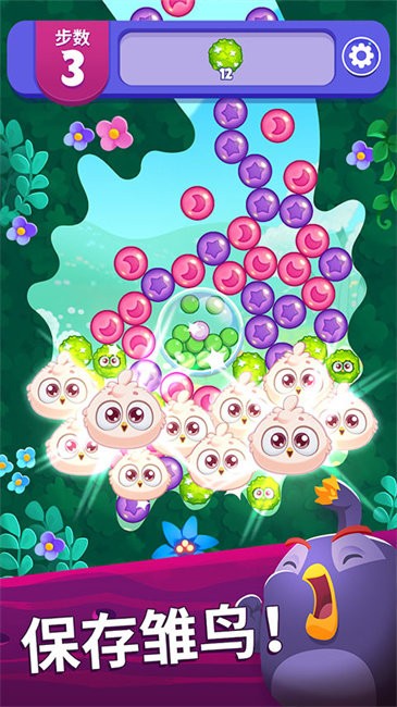 2、上方有数量颜色的泡泡是玩家需要完成的任务,并且在下方的小鸟为强力的道具