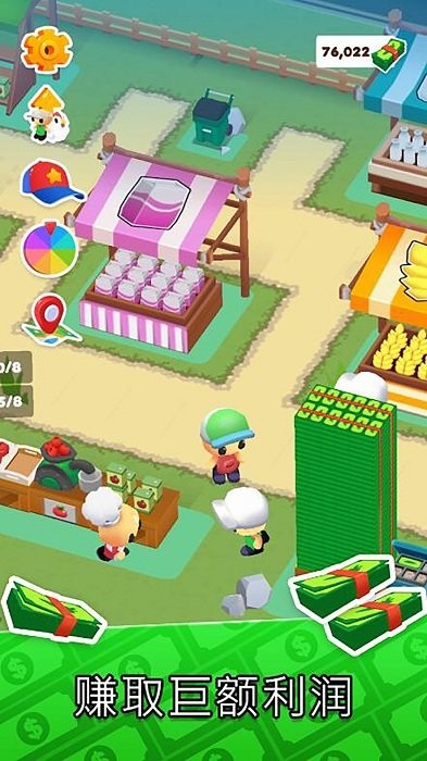 成为你城镇的老板,收集货物、收取现金并升级你的迷你市场。
