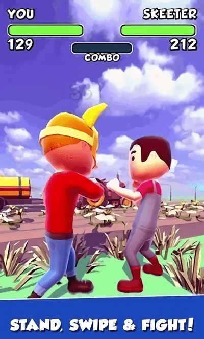 2、游戏以人类作为主角,摇摆格斗游戏的玩法非常简单。