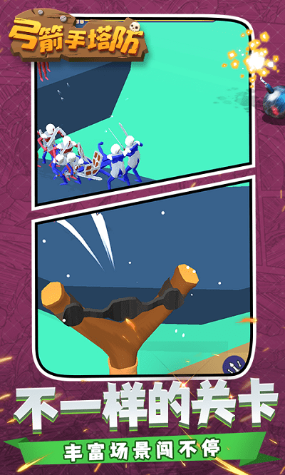 弓箭手塔防手机游戏让你在这里轻松的体验弓箭手的玩法,你将成为瞄准大师,拿起你的弹弓,轻松的打败其他人吧,在游戏中会有很多的敌人,你将要成为神弓手来保卫自己的地方,在游戏中将它们全部干掉,看看你的技术如何吧?相信你一定会挑战成功的。