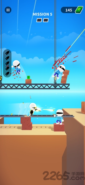 3、控制角色移动射击,瞄准梯子上的敌人攻击。