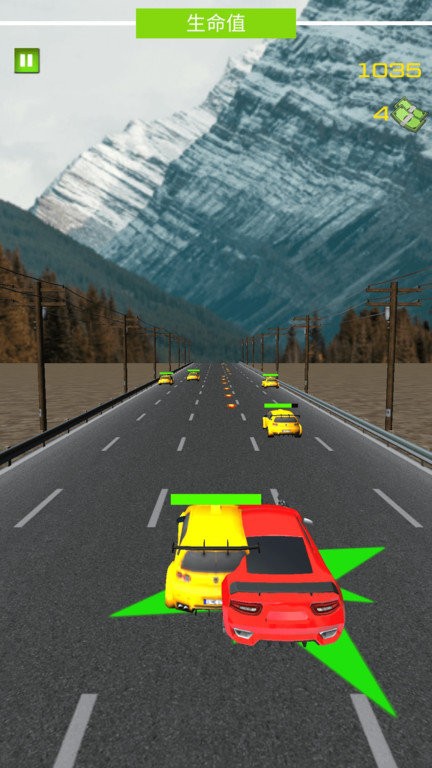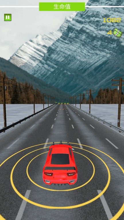 4、每个场地中都会出现很多障碍物,不能让自己的汽车损坏,快速移动躲避所有障碍物。