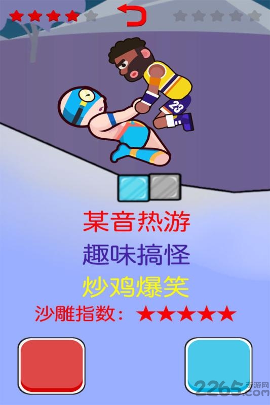 这是一款很风靡抖音魔性搞怪的小游戏,本年度最滑稽的趣味摔跤格斗游戏,适合两个人一起玩的手机游戏,两个基友扭打在一起格斗,通过不停的摁键来蹬腿,让对方头撞在地上或墙上你就获胜,可以和AI对战也可以和真正的基友同机对战,无论是单人模式还是双人模式都会让你充分体验到搞笑的乐趣。操作简单趣味性十足,简单上手令人上瘾,在基友摔跤游戏中,快邀请你的好基友,在同一个手机屏幕上将会摩擦出什么火花呢?让我们拭目以待