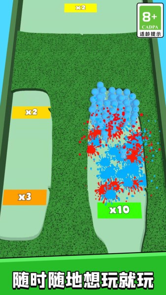 兄弟们跟我上这款休闲竞技游戏将红蓝两队橡皮人置于策略战场。游戏核心在于布局阵容与路径规划,通过简单运算不断壮大火柴人军团规模。在通往敌方塔楼的征途中,需要应对持续出现的陷阱障碍与敌军部队,每一次兵力调配都影响着战局走向。