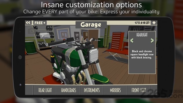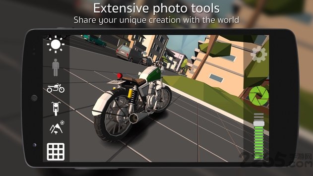 2、通过自由改装系统定制摩托车外观与性能,使用独特颜色组合喷涂车辆,并分享创意设计展示个性化赛车。