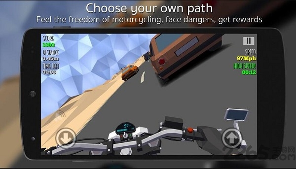 4.骑摩托车在一个或两个单行道,转弯和现实之间移动的交通,通过城市,乡村道路和沙漠环境中进行筛选。所有的光荣低多边形缺乏细节。
