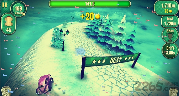 2、按住加速键提升速度并在急弯时配合漂移键完成转向。