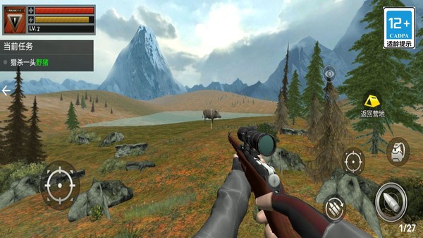 2、多种3D真实狩猎场景,狩猎场有天气变化、地形变化等多种随机事件