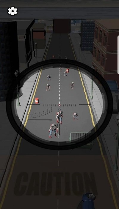 2、城市的大街上全部都是僵尸,用你手中的狙击步枪瞄准僵尸,对它们进行挨个点名
