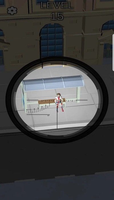 1、进入游戏这关卡有3个敌人,点击放大瞄准器。