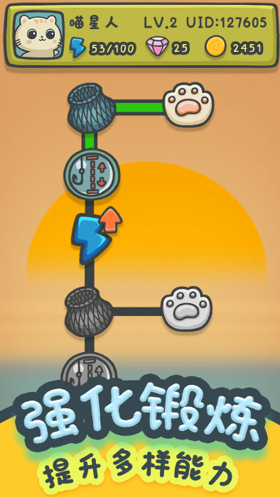 搜集各类渔具、升级猫咪的天赋以捕获更多的鱼!