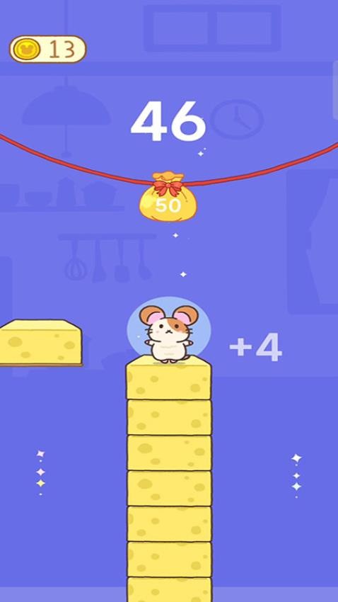 1、玩家需操控仓鼠进行灵活跳跃,帮助它收集场景中的各种食物,把握行动节奏可获取额外助力。
