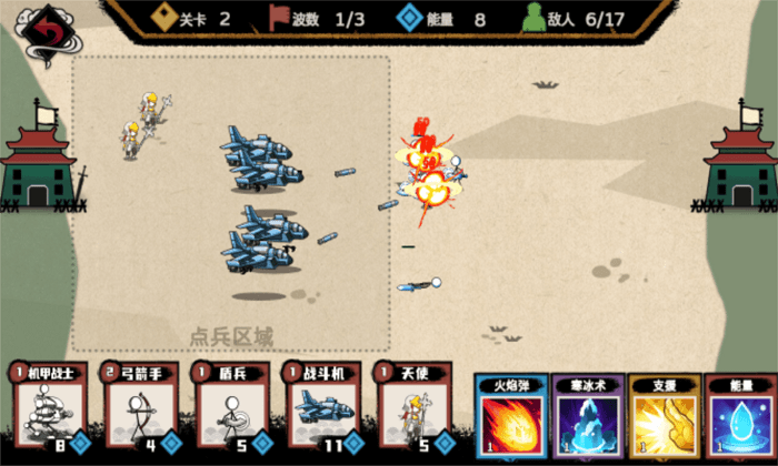 2、挑战各类敌对火柴人部队,让你的指挥技能不断增长。