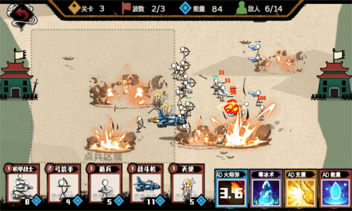 3、带给你策略战斗的乐趣,体验火柴人战争的紧张刺激。