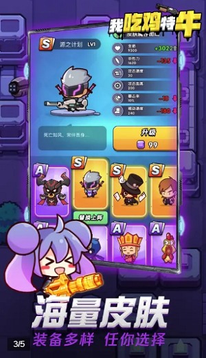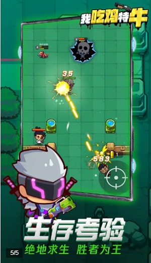 我吃鸡特牛是枪战类游戏,非常精致的卡通风格画面,人物形象全都非常Q萌可爱,玩家可以自由选择角色进入游戏,在赛场上和敌人进行战斗,通过灵活的操作控制人物淘汰所有对手,各种武器都能够自由使用,可玩性非常的强。