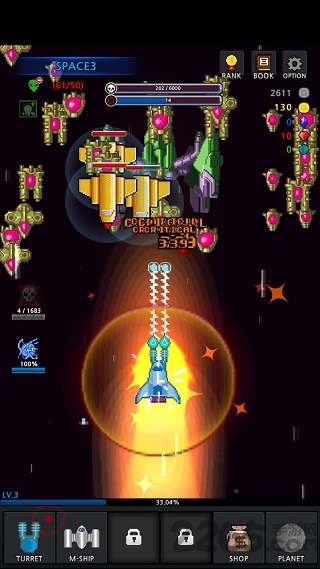 像素雷电游戏,你作为人类基地最强的战舰驾驶员,接受的指令是消灭外星生物的母巢,这项任务可不轻松,还好你有整个人类种族作为后盾,只要你能收集到珍贵的外星资源,那么我们地球研究人员便会提取其中的信息来强化你的战舰,再配合上你天才驾驶员的能力,一定可以完成任务的!